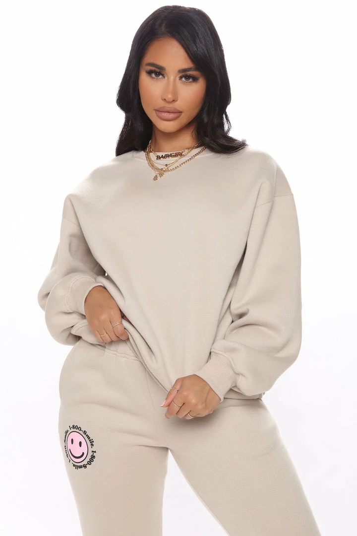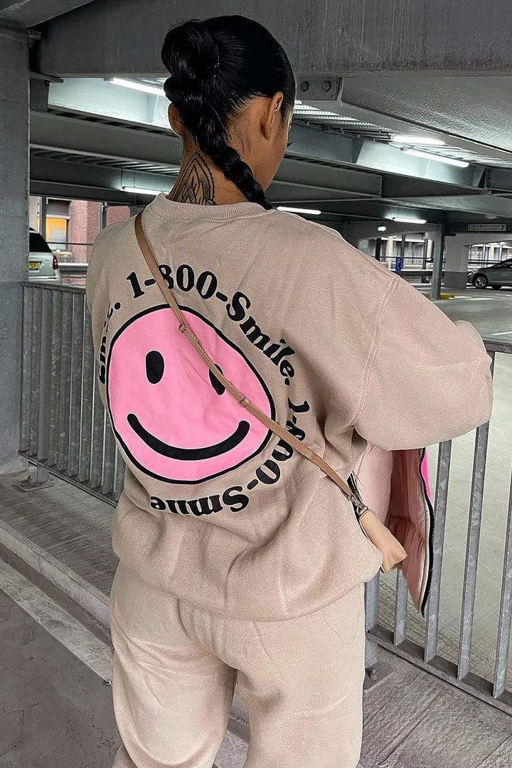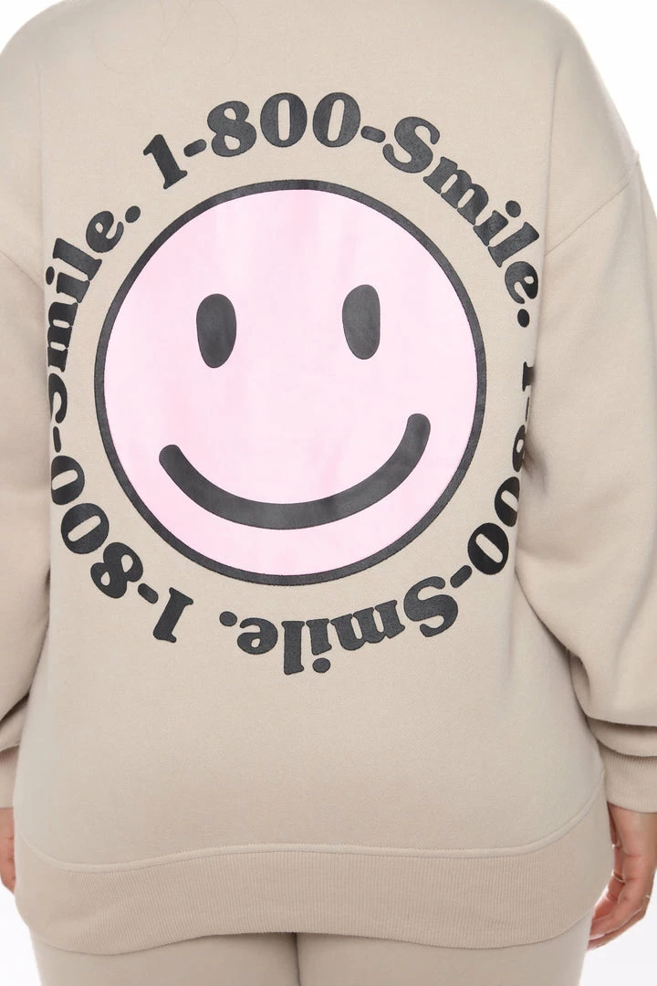 New โ Fashion Nova 1 800 Smile Happy Face Sweatshirt – Khaki ๐ฅ