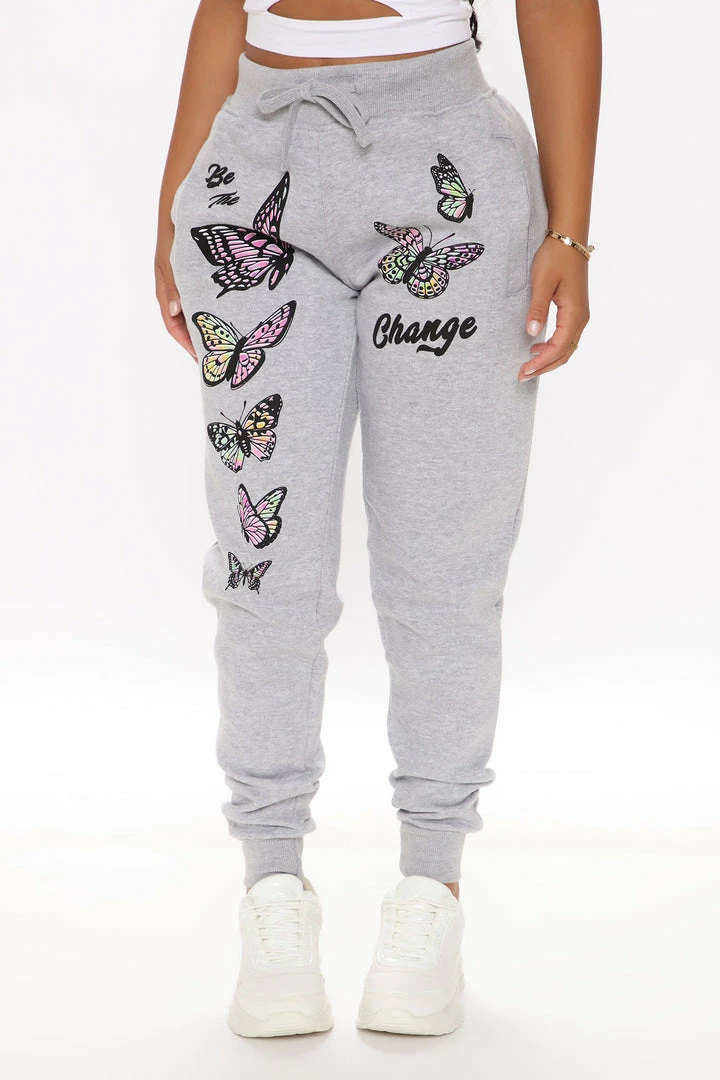 Discount π Fashion Nova Be The Change Butterfly Sweatpants – Heather Grey βοΈ
