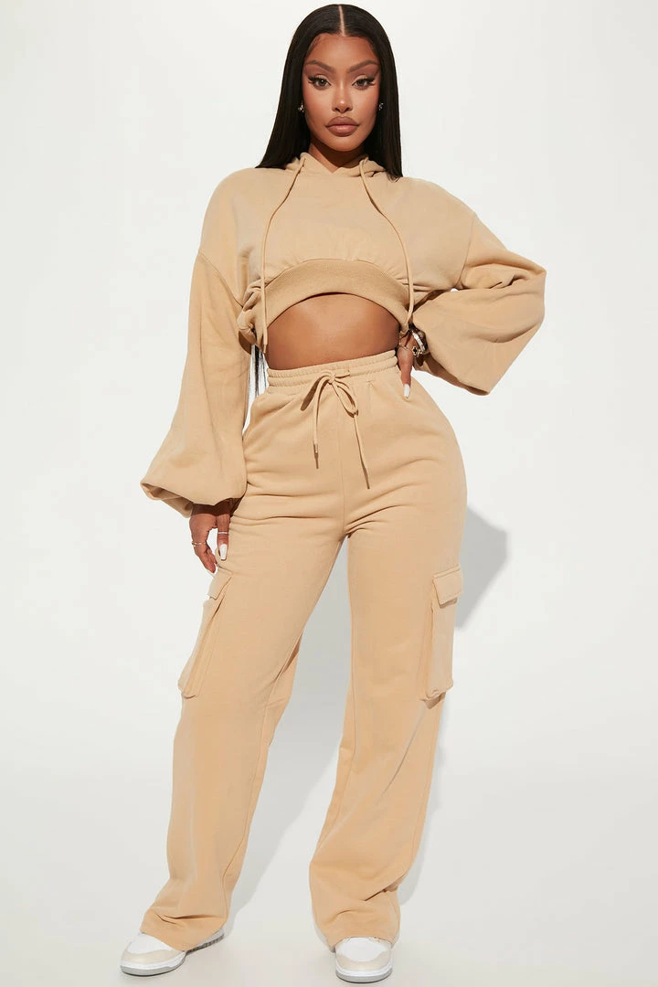 Cheap โ๏ธ Fashion Nova Chill Days Cargo Pant Set – Taupe Loungewear Pant Sets ๐