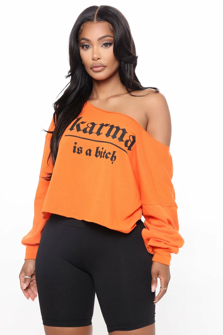 Cheap ๐งจ Fashion Nova Karma Is A B Off Shoulder Sweatshirt – Orange ๐