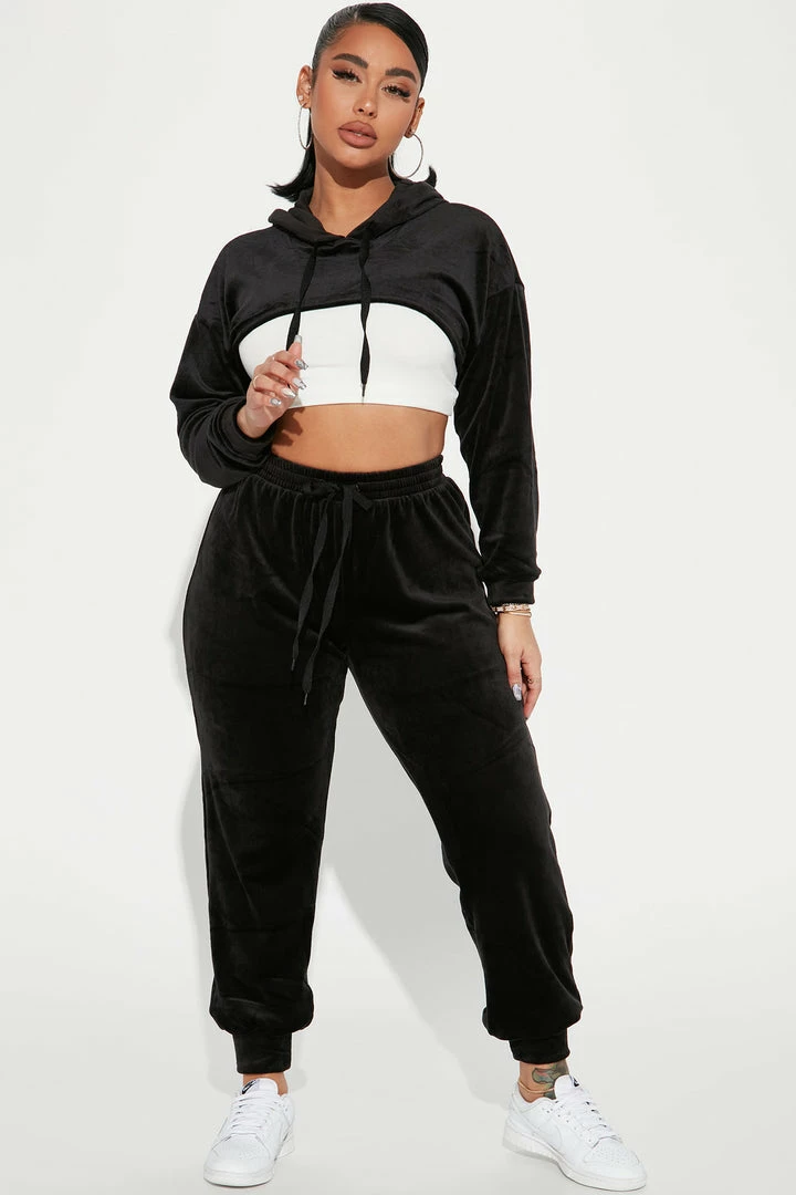 Hot Sale ๐ Fashion Nova Loungewear Pant Sets She’s Casual Velour Jogger Set – Black ๐ฏ