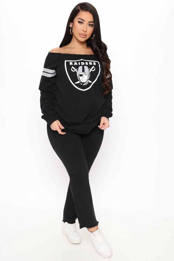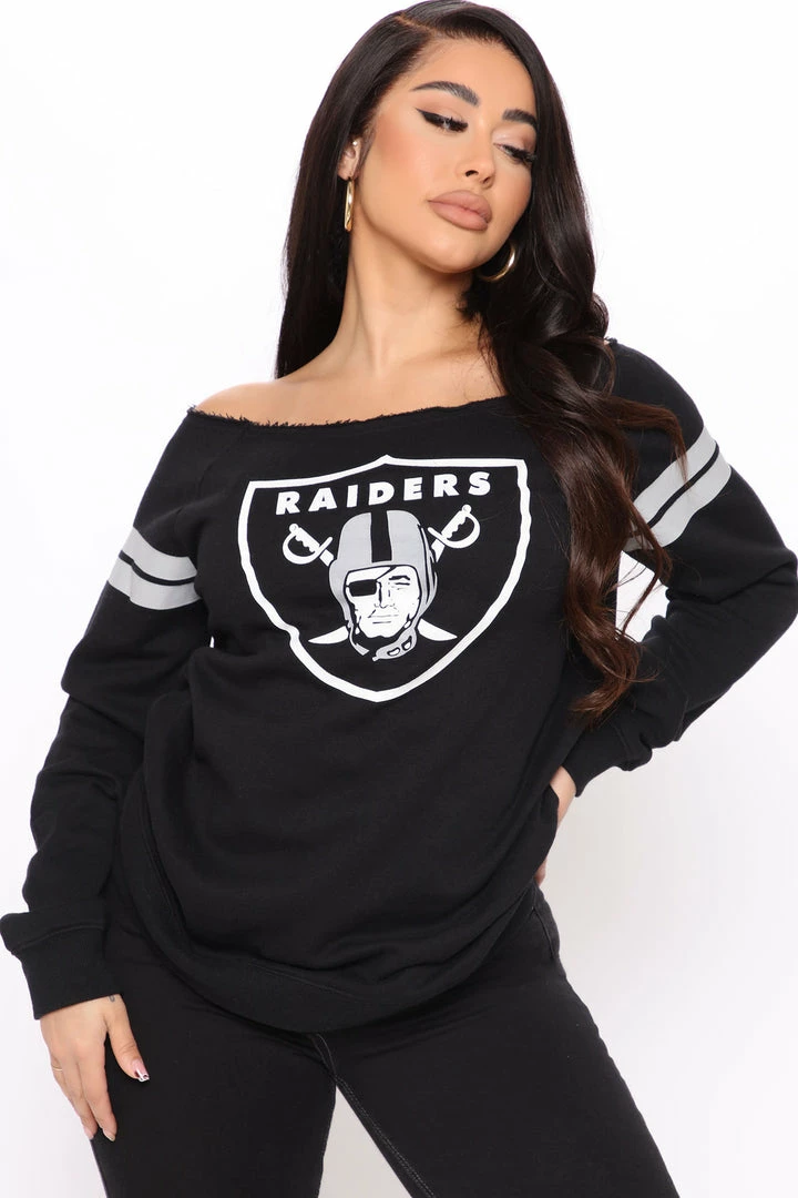 Deals ๐ Fashion Nova NFL Offensive Tackle Raiders Off Shoulder Sweatshirt – Black ๐