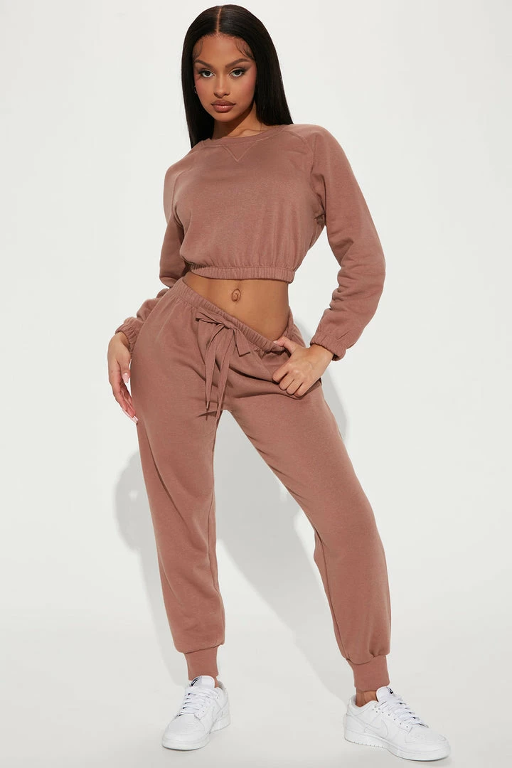 Outlet π Fashion Nova She’s Always Chill Jogger Pant Set – Mocha Loungewear Pant Sets π