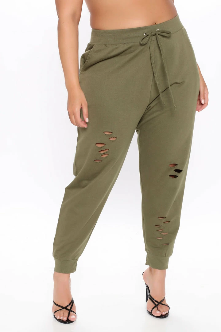 Wholesale 🔥 Fashion Nova Step Your Game Up Distressed Lounge Joggers – Olive Sweatpants & Joggers ❤️