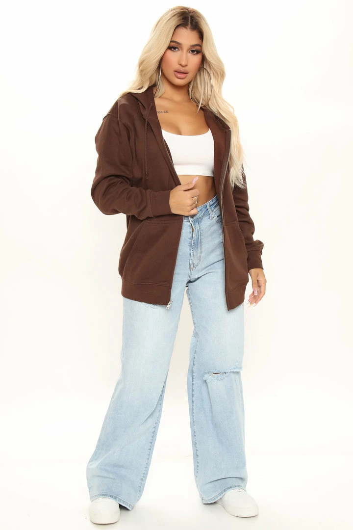 Cheap ๐งจ Fashion Nova Stole Your Boyfriend’s Oversized Zip Up Hoodie – Chocolate ๐