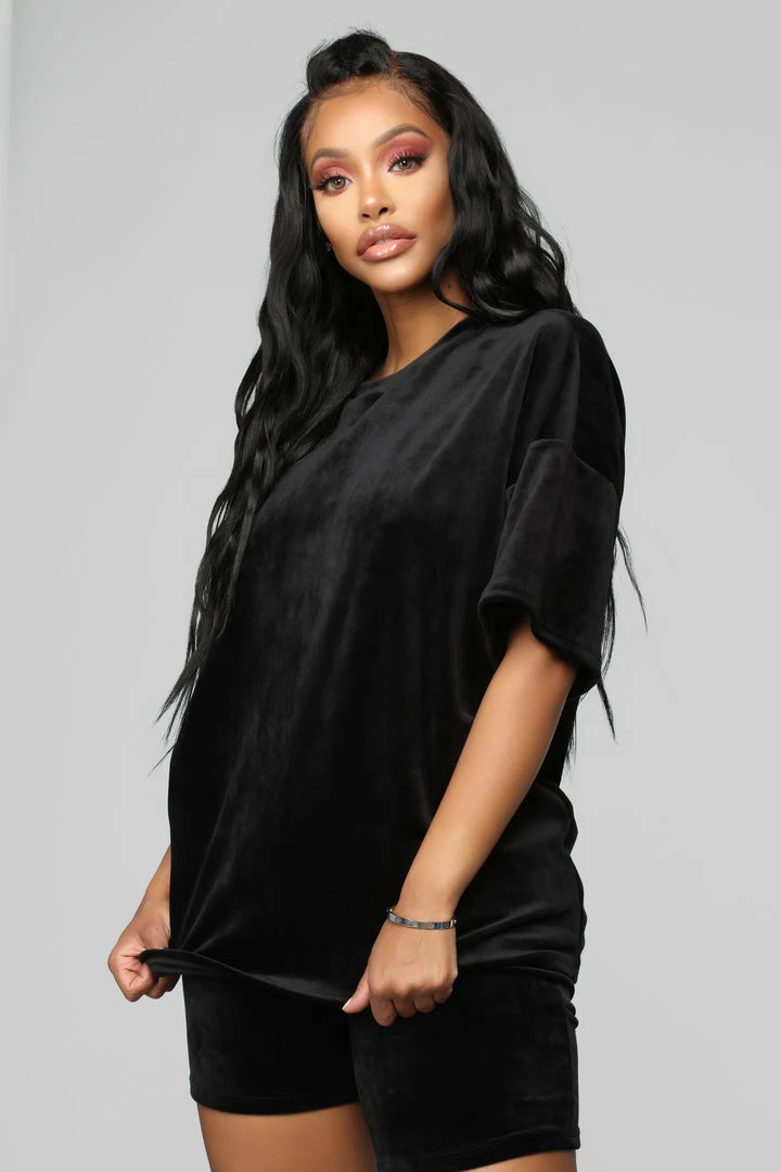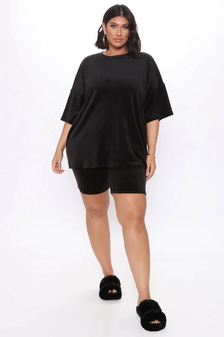 New 🛒 Fashion Nova Such A Softie Velour Set – Black Loungewear Short Sets 😀