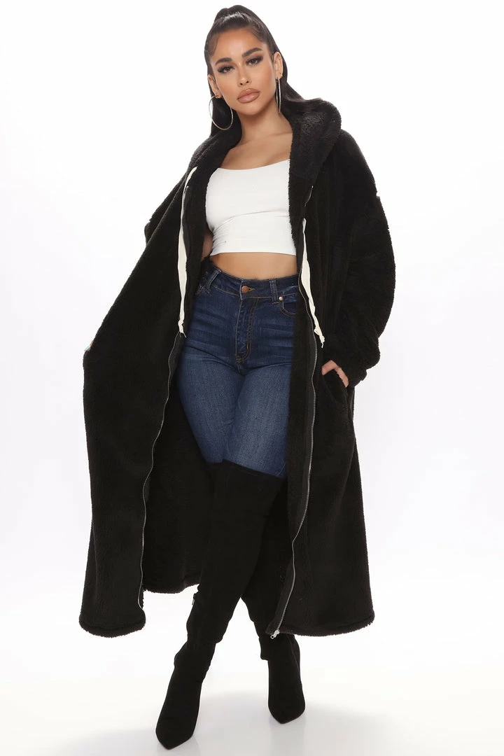 Hot Sale β¨ Fashion Nova Teddy Set Go Fuzzy Jacket – Black Hoodies & Sweatshirts π